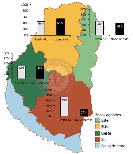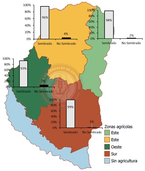 Figura 2: Avance en la siembra de soja de primera por zonas en la provincia de Entre Ríos.
