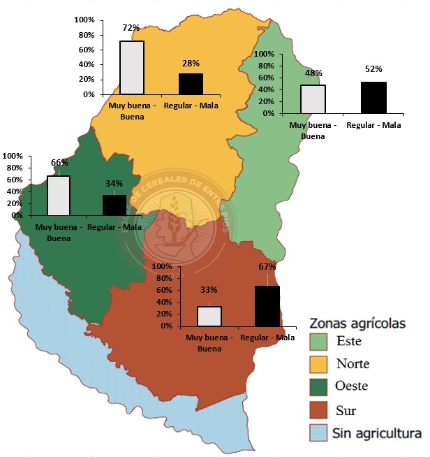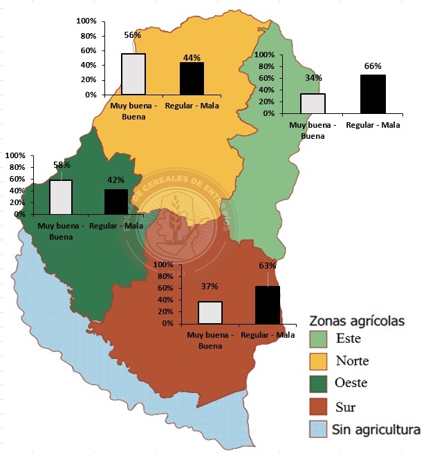 Condición de soja de segunda por zonas de la provincia de Entre Ríos