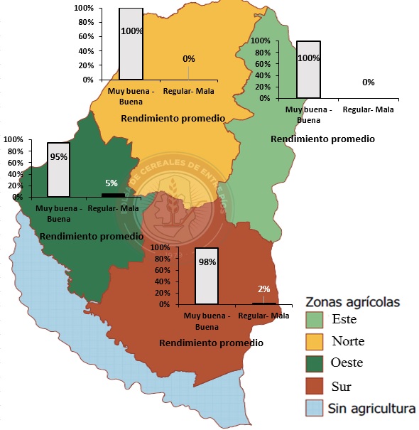 Figura 1: Condición del cultivo de maíz por zonas producticvas en Entre Ríos.