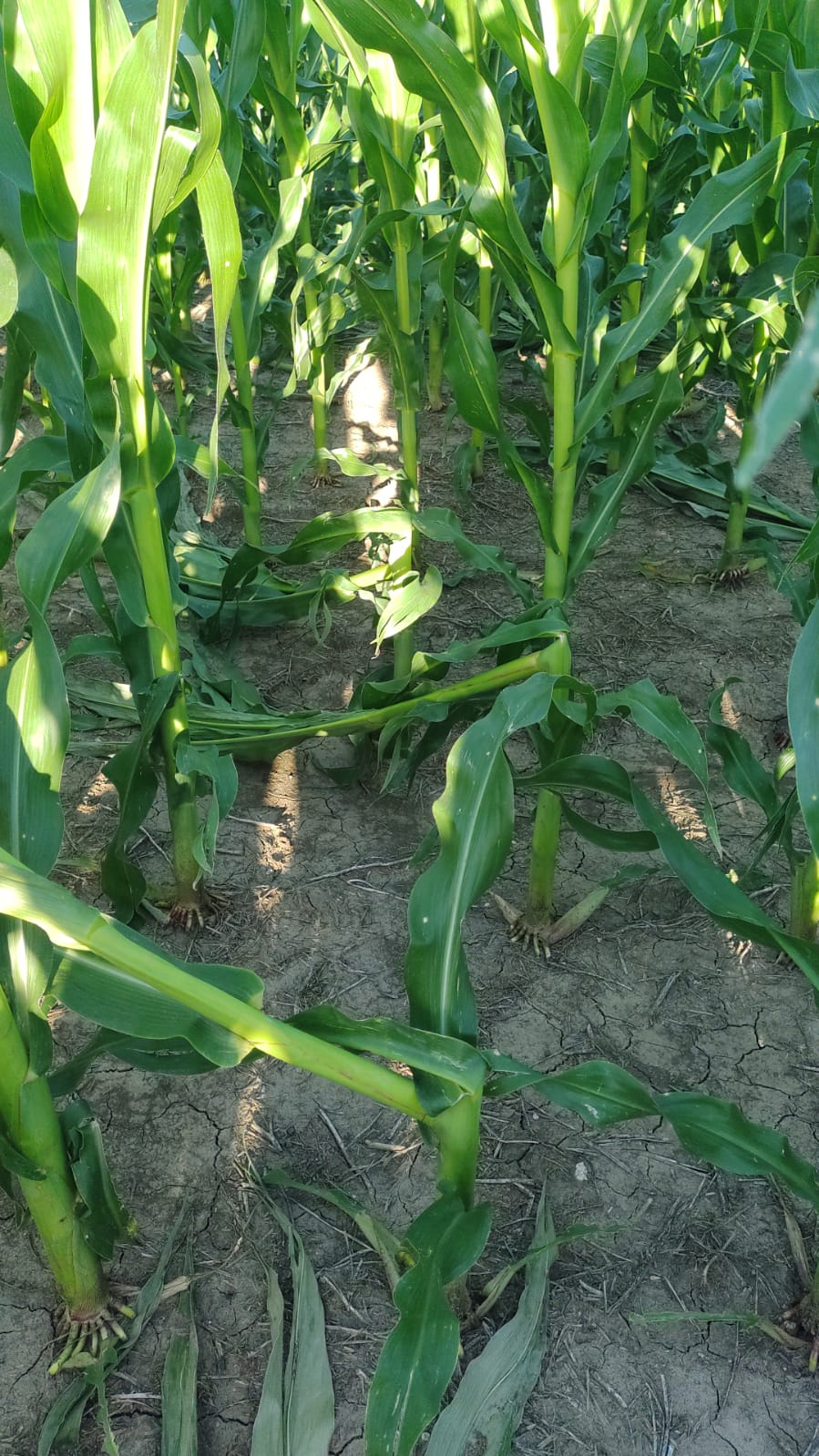 El cultivo se ubica en estadios fenológicos comprendidos entre V8 (ocho hojas desplegadas) y VT (panojamiento), etapa que coincide con su período crítico, definido como los 15 días previos y posteriores a la floración.