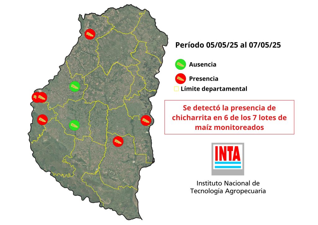 - Los datos provenientes de los monitoreos realizados por profesionales del Centro Regional Entre Ríos de INTA, desde mayo de 2024 a la fecha, respaldan las bajas densidades poblacionales de la chicharrita del maíz ocurridas en la última campaña agrícola.