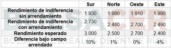 Tabla 2. Rendimientos de indiferencia y proyectados para soja de segunda, en kilos.