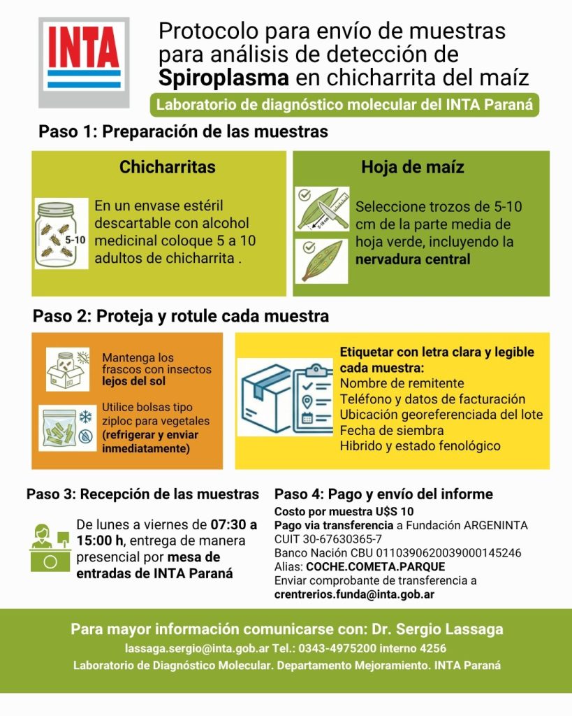 Ya podés acceder al servicio del laboratorio de INTA Paraná de Análisis para la detección de Spiroplasma en chicharrita del maíz