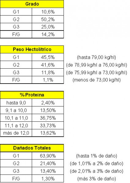A su vez, el SIBER mostró los resultados estadísticos de calidad de trigo pan efectuado por la Cámara Arbitral de Cereales de Entre Ríos sobre un total de muestras analizadas que alcanza entre el 65% al 70% del total provincial.
