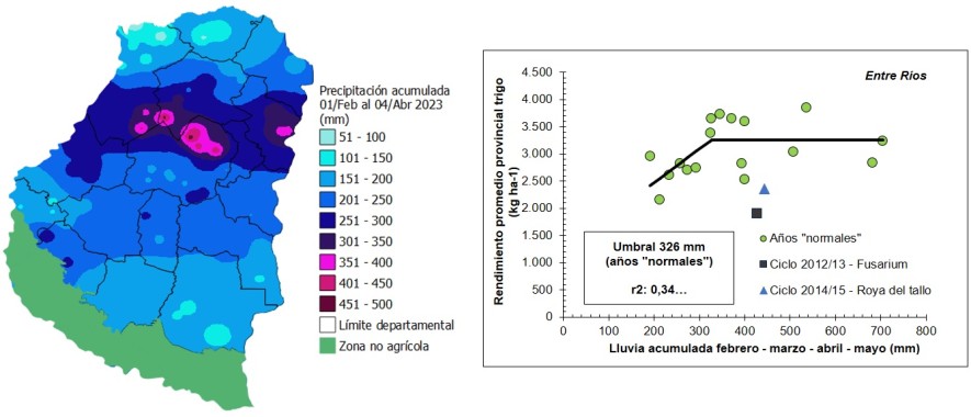 Figura 2: Precipitación acumulada en la provincia de Entre Ríos del 01/Febrero al 04/Abril del 2023.