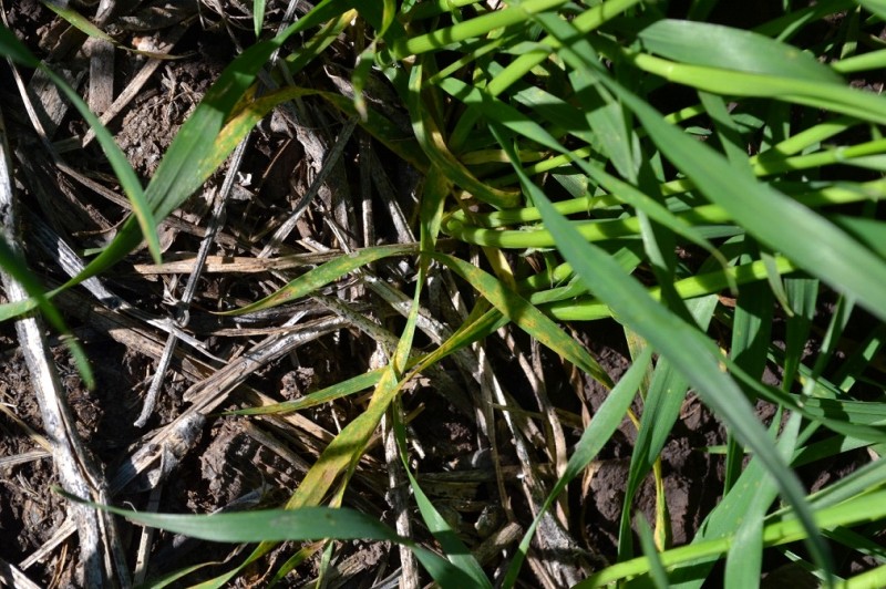 Mancha amarilla es la enfermedad prevalente en la secuencia trigo-soja/trigo y a diferencia de otras campañas, se observa en la mayoría de los lotes, septoriosis de la hoja sin importancia epidémica (Mapa N°1 y 2).