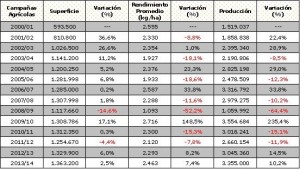 EVOLUCION DE LAS ÚLTIMAS 14 CAMPAÑAS AGRÍCOLAS