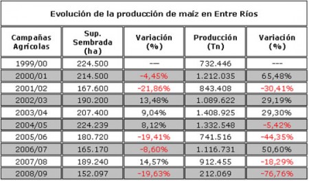 La cosecha de maíz aporta a la provincia solo 212.069 toneladas. La pérdida económica es realmente importante, ya que para la implantación del cereal los productores gastaron $281.857.187 y recuperaron al momento de la cosecha $80.586.220, lo cual indica una pérdida de $201.270.967.