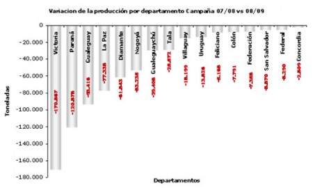 Un punto a destacar, en el 2007/08 solo el departamento Victoria había logrado una producción total de 237.046 tn, lo que supera por 11,78 puntos porcentuales al total de toneladas logradas este año a nivel provincial.