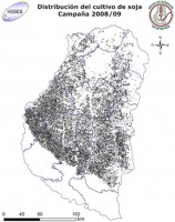 El mapa muestra la distribución geográfica de los lotes de soja en el ámbito provincial para la presente campaña.