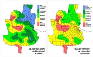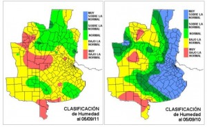 El ajuste en la clasificación de humedad que se ha dado en esta última etapa, no debe atribuirse al incipiente fenómeno de La Niña. Las fuertes irrupciones de aire polar de agosto han instalado masas de aire muy secas. Las mismas recién comienzan a modificarse, aunque es lenta la incorporación de humedad, notablemente distinta a la situación que se observó a comienzos de 2010.