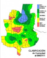 Como es habitual, se analizan las condiciones de humedad actuales mediante la comparación con los valores de reservas normales para la fecha. Los resultados de la comparación se clasifican en categorías, teniendo en cuenta para la estadística la serie de datos1973-2010. El análisis se realiza teniendo en cuenta como cobertura una pastura de consumo permanente a lo largo de todo el año.