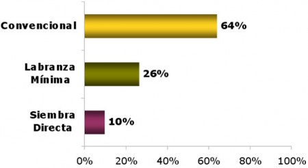 Como puede observarse predominó la labranza convencional en el 64% de lo encuestado, ya que el arroz requiere suelos preparados y bien nivelados para la sistematización de las curvas de nivel; el 36% restante optó por la modalidad labranza mínima o bien siembra directa.