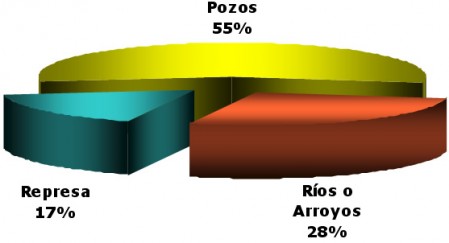 En segundo lugar se ubicaron las chacras que obtienen el recurso hídrico de ríos o arroyos y en tercer lugar la obtenida mediante la utilización de represas, ver Gráfico 4.