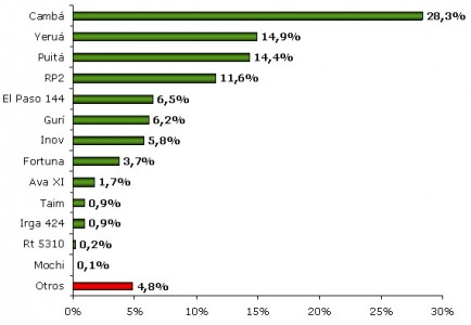 El Gráfico 6 orienta sobre cuáles han sido los cultivares más sembrados en la presente campaña.