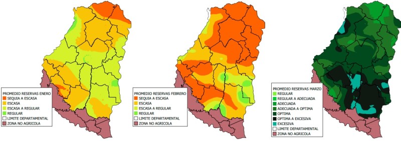 – El 29 % (147.000 ha) recibió una precipitación entre 191 a 200 mm y el 41 % (208.000 ha) tuvo un promedio de reservas óptimas.