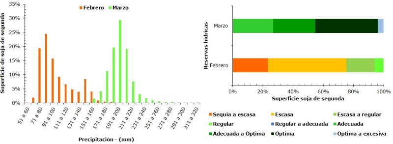 No obstante, el déficit hídrico más marcado se generó en el mes de diciembre, lo cual impactó negativamente en el rendimiento del maíz de primera, pero no en el periodo crítico para la oleaginosa (trimestre enero – febrero – marzo), donde las lluvias se ubicaron levemente por sobre el valor esperado.