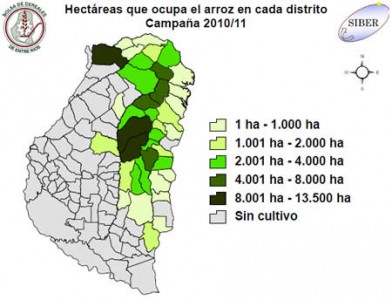 El Sistema de Información Agrícola de la Bolsa de Cereales de Entre Ríos ha realizado el informe correspondiente a la superficie implantada con arroz en el ámbito provincial para la campaña 2010/11.