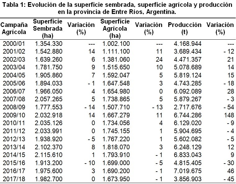 Este informe sintetiza la información de los principales cultivos: trigo, lino, colza, maíz, soja, sorgo, girasol y arroz implantados en la campaña 2017/18 en la provincia de Entre Ríos.