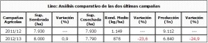 Por otra parte en lo que a lino se refiere hacia mediados de mayo la intención de siembra se posicionaba cercana a las 12.000 ha; pero hubo dos factores que frenaron este aumento del área: