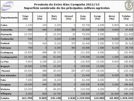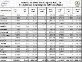 La Bolsa de Cereales de Entre Ríos en el marco del SIBER elaboró el informe con las cifras definitivas por departamento del ciclo agrícola 2012/13 en el ámbito provincial.