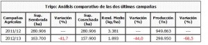 Desde los meses previos al inicio de la siembra del trigo se detectaba por parte de los productores un fuerte desánimo hacia la implantación de trigo (la causa estaba directamente relacionada con los problemas de comercialización sufridos en las anteriores campañas); este hecho finalmente se concretó y dejó como consecuencia la menor superficie implantada de los últimos 13 años.