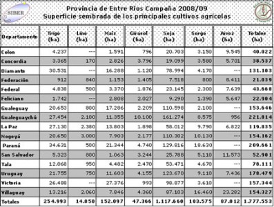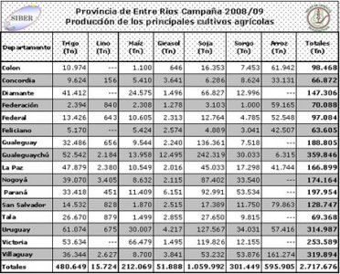 La Bolsa de Cereales de Entre Ríos en el marco del SIBER elaboró el informe con las cifras definitivas por departamento del ciclo agrícola 2008/09 en el ámbito provincial.