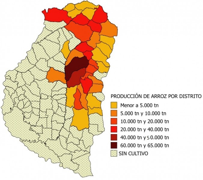 La producción de arroz en la campaña 2015/16 se ubicó en 454.070 tn, por lo que se detectó una caída del 17% con respecto al año pasado; este hecho representó una merma de 93.490 tn.