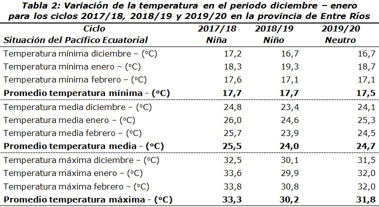 En la Tabla 2 se presenta el promedio de la temperatura mínima, media y máxima para el periodo en estudio.