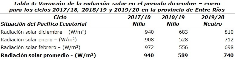 Los valores más altos de radiación solar se asocian al evento “La Niña” y por otra parte, los valores más bajos al evento “El Niño”.