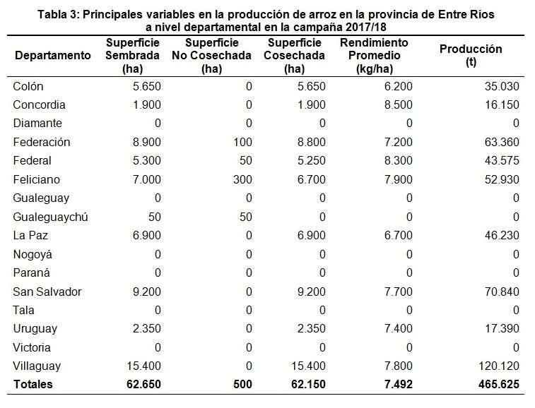 INFORME PRODUCCIÓN DE ARROZ EN ENTRE RÍOS – CAMPAÑA 2017/18