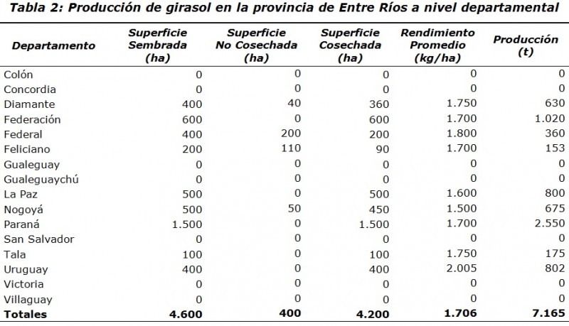 La quita de las retenciones al girasol le otorgó mayor competividad frente a los otros cultivos estivales (soja, sorgo y maíz), lo cual generó mayor interés por parte de los agricultores entrerrianos. La disponibilidad de semilla fue la gran limitante para que el área pudiera expandirse aún más.