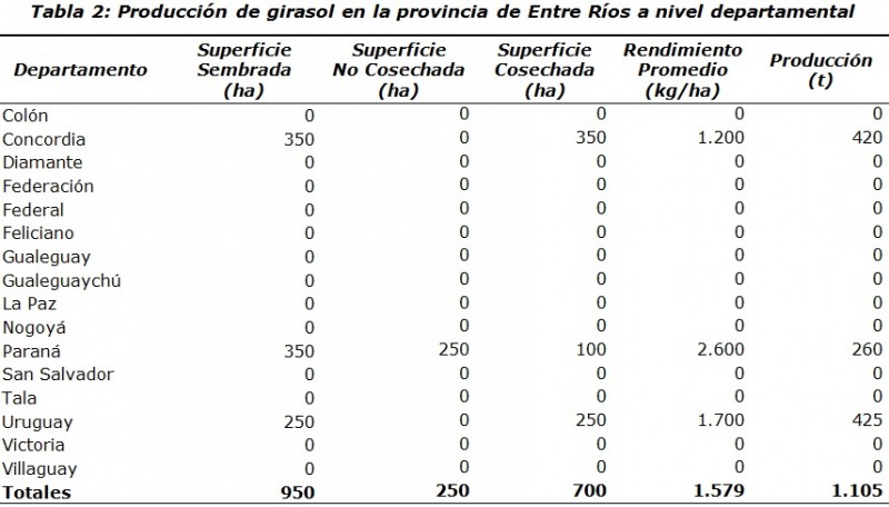 PRODUCCIÓN DE GIRASOL EN LA PROVINCIA DE ENTRE RÍOS A NIVEL DEPARTAMENTAL