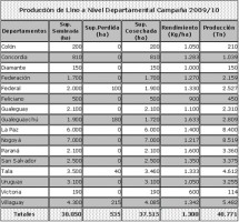 Los valores finales de Área Sembrada, Rendimiento, Producción Departamental y el Total Provincial para la campaña 2009/10 están contenidos en el siguiente cuadro.