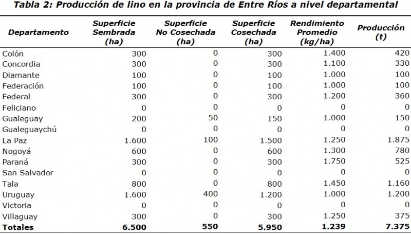 PRODUCCIÓN DE LINO EN LA PROVINCIA DE ENTRE RÍOS A NIVEL DEPARTAMENTAL