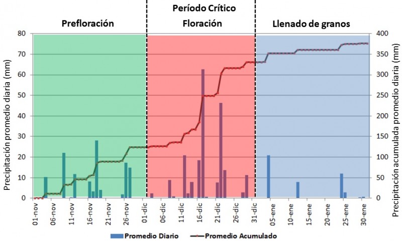 A continuación se describen los factores climáticos más importantes en el trimestre noviembre – enero, momento en el cual el maíz ubicó su período crítico.