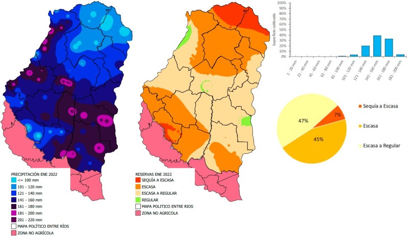La precipitación promedio del mes de enero en la provincia de Entre Ríos es de 126 mm para el periodo 2004 – 2020 (BCER).