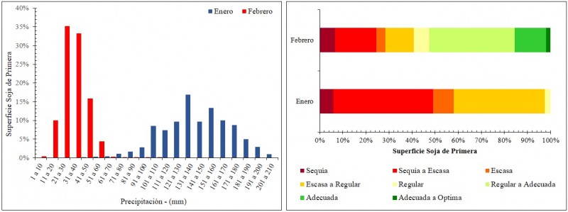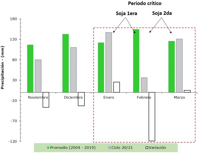 Es importante destacar que el periodo crítico de la soja se ubica dentro del trimestre enero – febrero – marzo. En consecuencia, en base a los datos climáticos, se puede concluir que el importante déficit hídrico de febrero tuvo repercusiones negativas tanto para la soja de primera como para la de segunda.