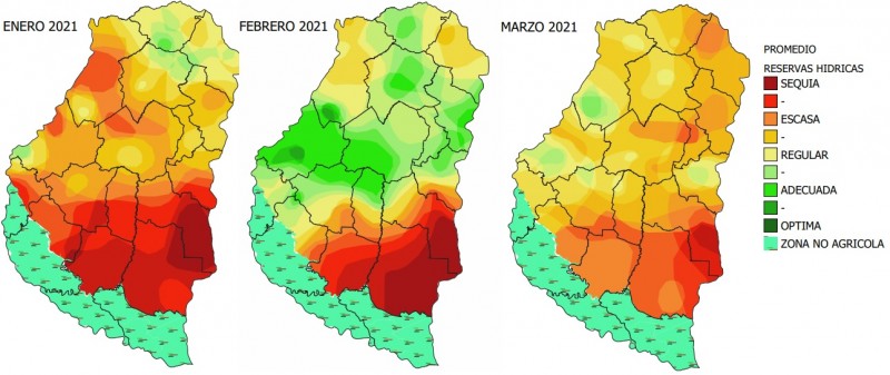 En la Figura 4 se muestra el promedio de las reservas hídricas en los meses de enero, febrero y marzo del 2021 en la provincia de Entre Ríos.