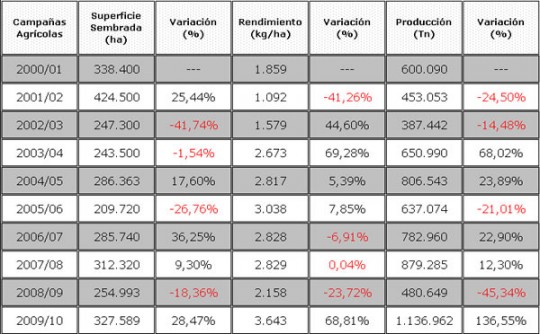 Si bien al inicio de la campaña la intención del área triguera se presentaba inferior a la del ciclo anterior (como fuera informado en el reporte sobre área sembrada), existieron factores tales como: la buena humedad disponible en Entre Ríos al momento de la siembra en comparación con lo que acontecía en el resto del área pampeana, la disminución del precio de los fertilizantes, el alza en la cotización del cereal, la renegociación del precio de los arriendos y la necesidad del productor de contar con flujo de dinero para afrontar la siembra de gruesa fueron las causantes de un cambio en el escenario de la campaña de granos finos 2009/10.