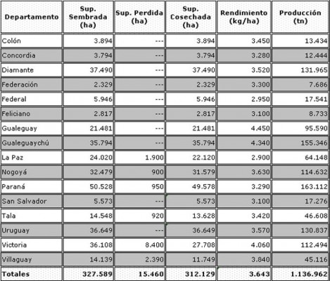 A continuación se presentan los datos estadísticos históricos pertenecientes al Sistema de Información Agrícola de la Bolsa de Cereales de Entre Ríos correspondientes a los últimos diez años.