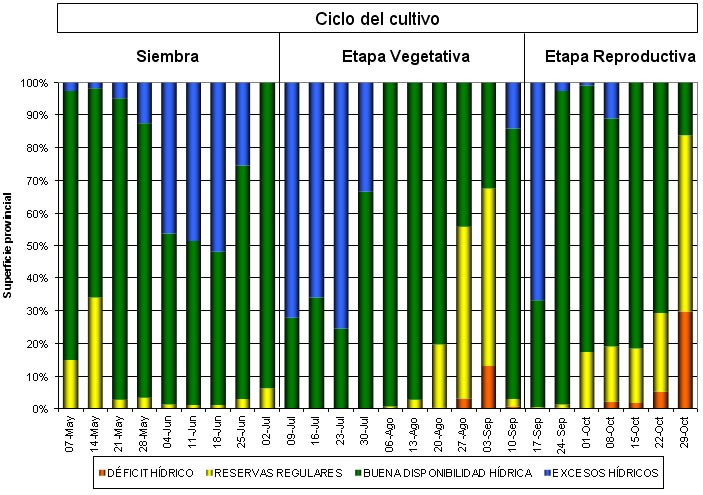 Durante la etapa de siembra hubo muy buena disponibilidad hídrica, incluso situaciones de excesos que paralizaron temporariamente la continuidad de las labores de implantación.