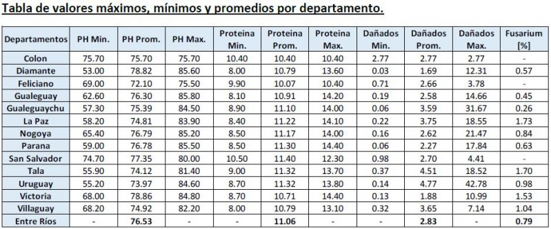 En la Tabla 3 se muestran los datos preliminares para evaluar el daño por fusarium en base a muestras ingresadas a la Cámara Arbitral de Entre Ríos desde el 11/11/2019 hasta el 30/12/2019. Para el promedio de fusarium, se consideraron solo las muestras donde se observó presencia.
