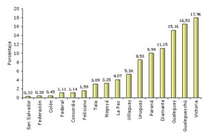 Se destacan los departamentos Victoria, Gualeguaychú, Gualeguay, Diamante y Paraná los cuales concentran el 70,79% de la producción total.