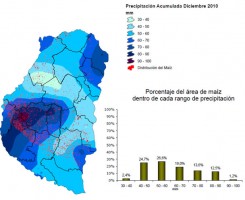 El Mapa 1 contiene la información de la ubicación de los lotes de maíz y la distribución de la precipitación acumulada en el mes de diciembre.