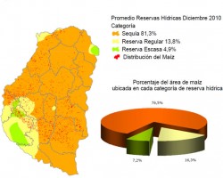 Posteriormente, ya entrando en el período crítico para el cultivo que fue el mes de diciembre, el 90% del territorio provincial contaba con una situación de sequía y tan solo el 10% restante con reservas escasas.