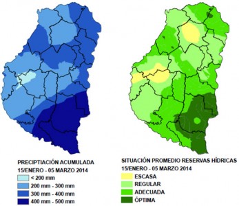 La precipitación promedio acumulada entre noviembre a marzo en la provincia se posicionó alrededor de 740 mm, superando en 120 mm al monto esperado que para Entre Ríos se ubica próximo a los 620 mm.