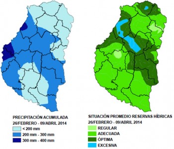 Por otra parte, hubo excesos hídricos en áreas comprendidas entre los departamentos La Paz y Villaguay y en el centro de Feliciano.