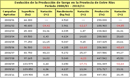 INFORME PRODUCCION SORGO CAMPAÑA 2010/11