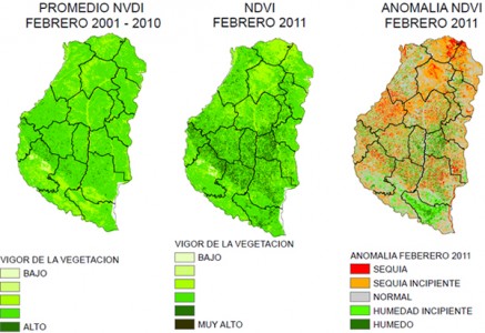 Empleando imágenes satelitales se ha elaborado una serie de mapas con la finalidad de analizar la situación hídrica de la vegetación en Entre Ríos durante los meses de enero y febrero.